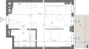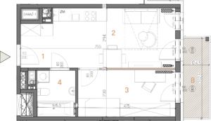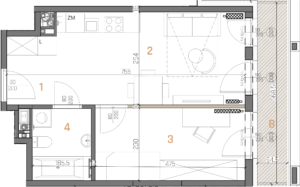 Numery pomieszczeń odpowiadają oznaczeniom na planie mieszkania.1. Komunikacja
